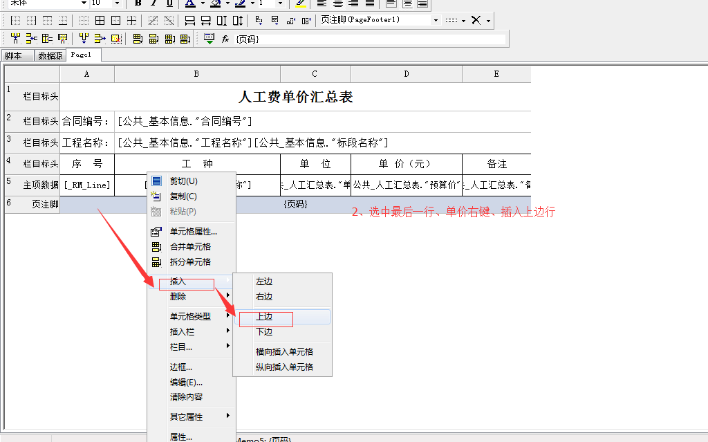 7、在插入子报表SubreportPage1里面单击右键,插入行;