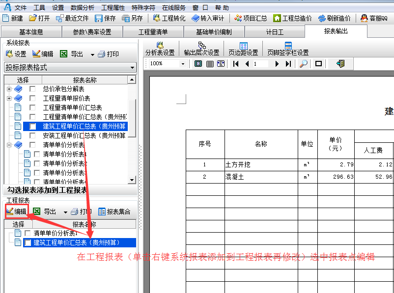 如何在报表中添加页脚签字和编辑签字1、在工程报表(单击右键系统报表添加到工程报表再修改)选中报表点编辑(工程报表中修改)